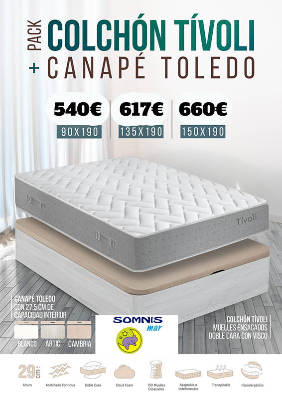 Pack matelas TIVOLI + Cadre lit coffre en bois TOLEDO