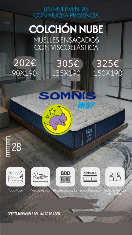 Colchón de muelles ensacados y viscoelástica modelo NUBE